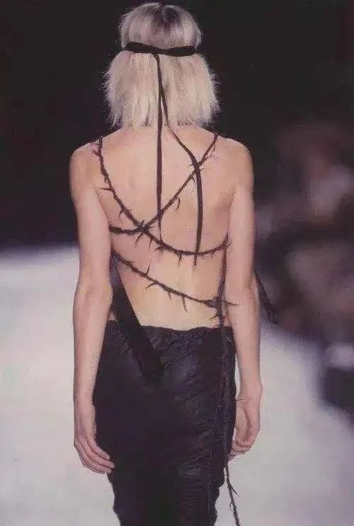 暗黑先锋派和解构主义见多不怪,但是像 Ann Demeulemeester 这样能够融合骑士精神、女性视角和90年代极简主义风骨的设计师仅此一位。Ann Demeulemeester 的设计刚柔并济,既性感又富有杀气。相比之后 Sebastien Meunier “气若游丝” 的悬浮感,90年代 Ann 本人对于品牌的塑造以及对于新女性气质的把控已经相当超前。