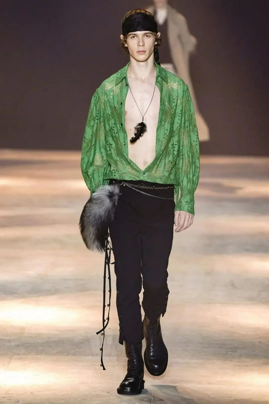 当然, Sebastien Meunier 对于品牌的贡献也很大,尤其是在品牌男装部分,他带来的 Ann Demeulemeester 虽不完全与创始人一致,但善于融入很多叙事和文化符号作为时装元素,也让品牌的整体风骨更为缥缈和诗意。多年来,Meunier 亦用自己的实力积累了不少粉丝。
