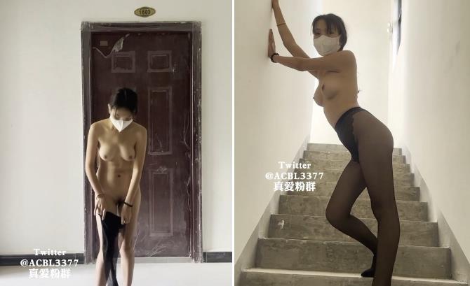 推特女神(爱吃菠萝)群内福利2部小区楼道内裸身边走边换情趣丝袜