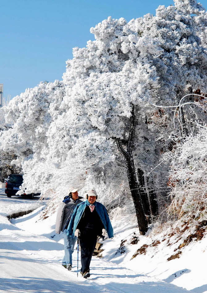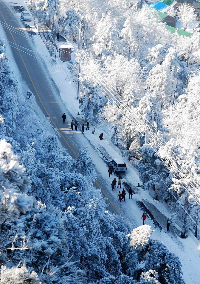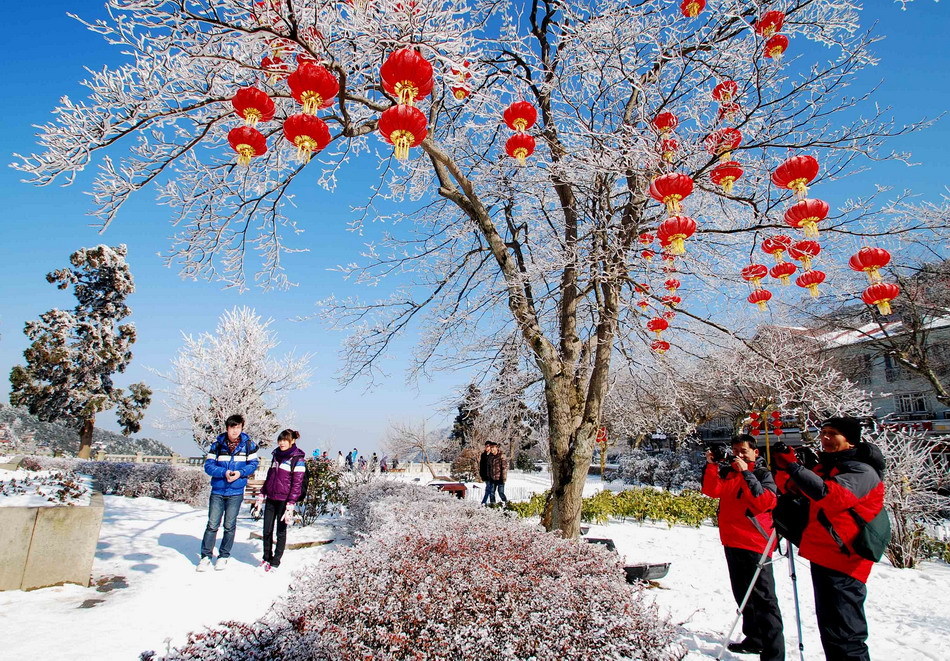 12月26日,江西庐山雪后放晴,美丽的雾凇在蓝天的映衬下,晶莹剔透,亦真亦幻,吸引大批中外游客纷至沓来。據了解,庐山管理局决定于2011年1月1日至1月31日全月免收135元进山门票。